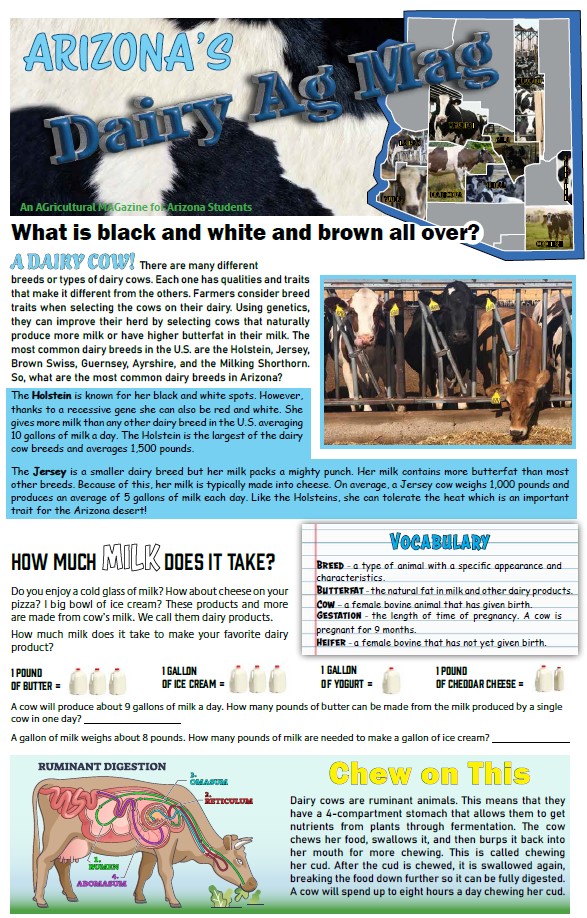 Have you ever heard of an AgMag? Our Agricultural Magazines (AgMags) are designed for kids to read informational text in a fun way! We have a variety of AgMags available for students of all ages on a variety of topics. You can download your FREE copy or request a classroom set by emailing aitc@azfb.org.