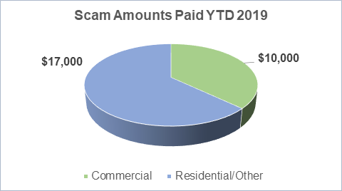 Every day, concerned customers call SRP's Contact Center representatives to report scam activity. In 2019, more than $17,000 were paid out to scammers by commercial customers and close to $10,000 by residential customers.